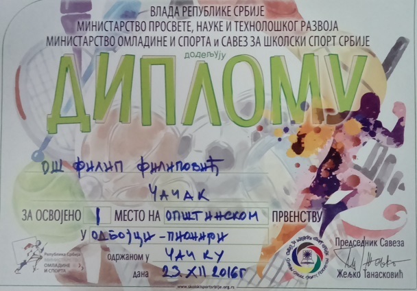 Ekipa OŠ ’’Filip Filipović’’ izborila je prvo mesto na Opštinskom takmičenju u odbojci za dečake. Takmičenje 6 osnovnih škola sa […]